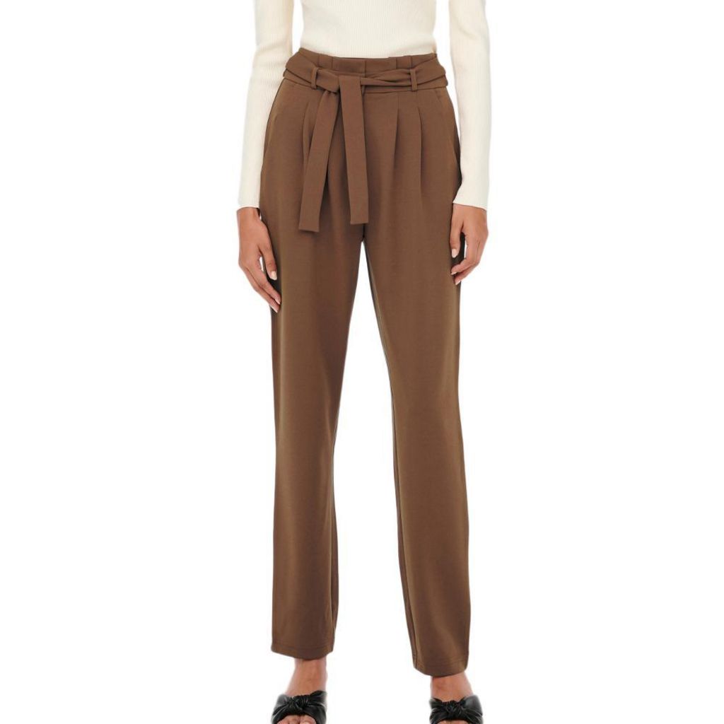 Craquez pour ce pantalon de la marque JDY ! Pantalon fluideCeinture à nouer à la tailleComposition : 95% polyester 5% elasthanneColoris : Marron2 poches sur le devantLongueur chevilleTissus stretch