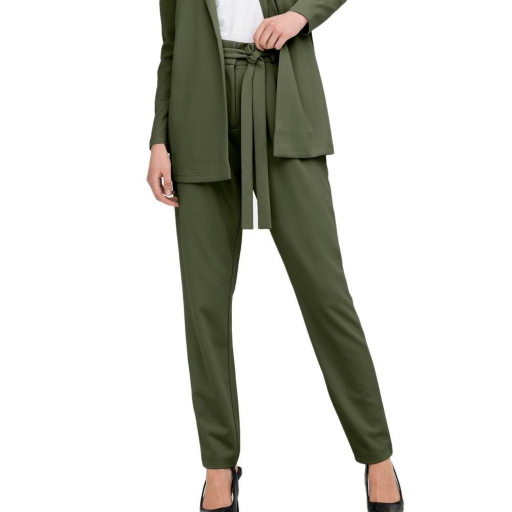 Craquez pour ce pantalon de la marque JDY ! Pantalon fluideCeinture à nouer à la tailleComposition : 95% polyester 5% elasthanneColoris : Kaki 2 poches sur le devantLongueur chevilleTissus stretch