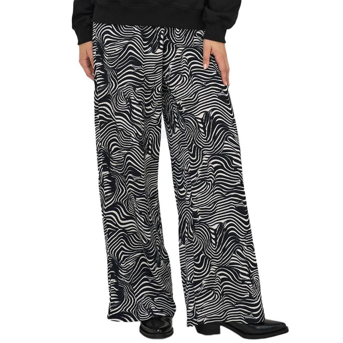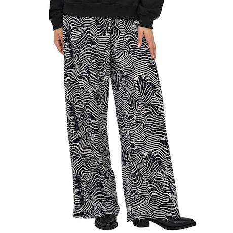 Optez pour ce pantalon fluide JDY- Coloris : Beige/Noir- Composition : 65% Polyester, 25% Viscose, 5% Elasthanne, 5% Fibres métallique- Taille élastique- Motifs animalier