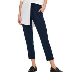 Pantalon noir femme de la marque JDY , modèle souple et fluide pour être chic et casual à la fois.Élastique et Cordon de serrage à la taille Deux poches avec des volants Coupe légèrement droite Finitions plissées sur l'avant Tissu stretch Coloris : Marine Composition : 95% polyester, 5% élasthanne