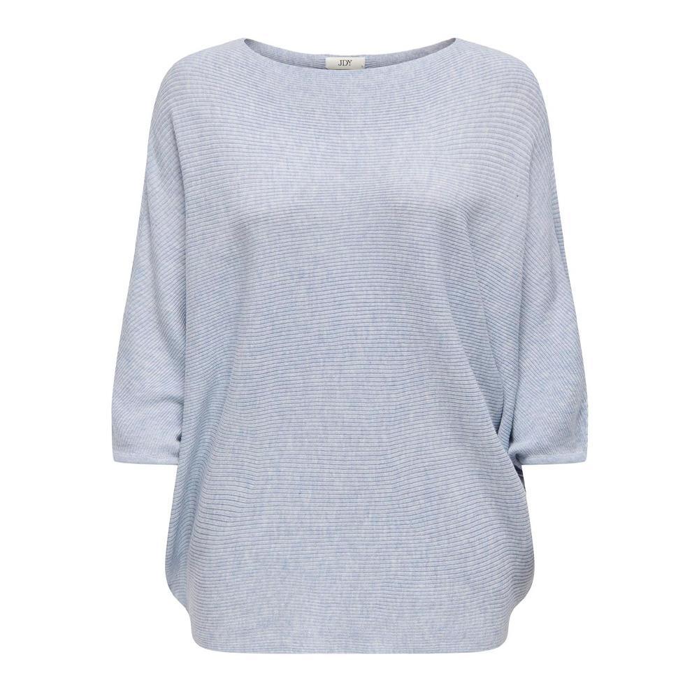 Pull femme de la marque Jacqueline de Yong modèle ampleManches 3/4 chauve-sourisCol rondCoupe ampleColoris : Bleu ClairComposition : 60% polyester , 25% viscose , 15% nylon