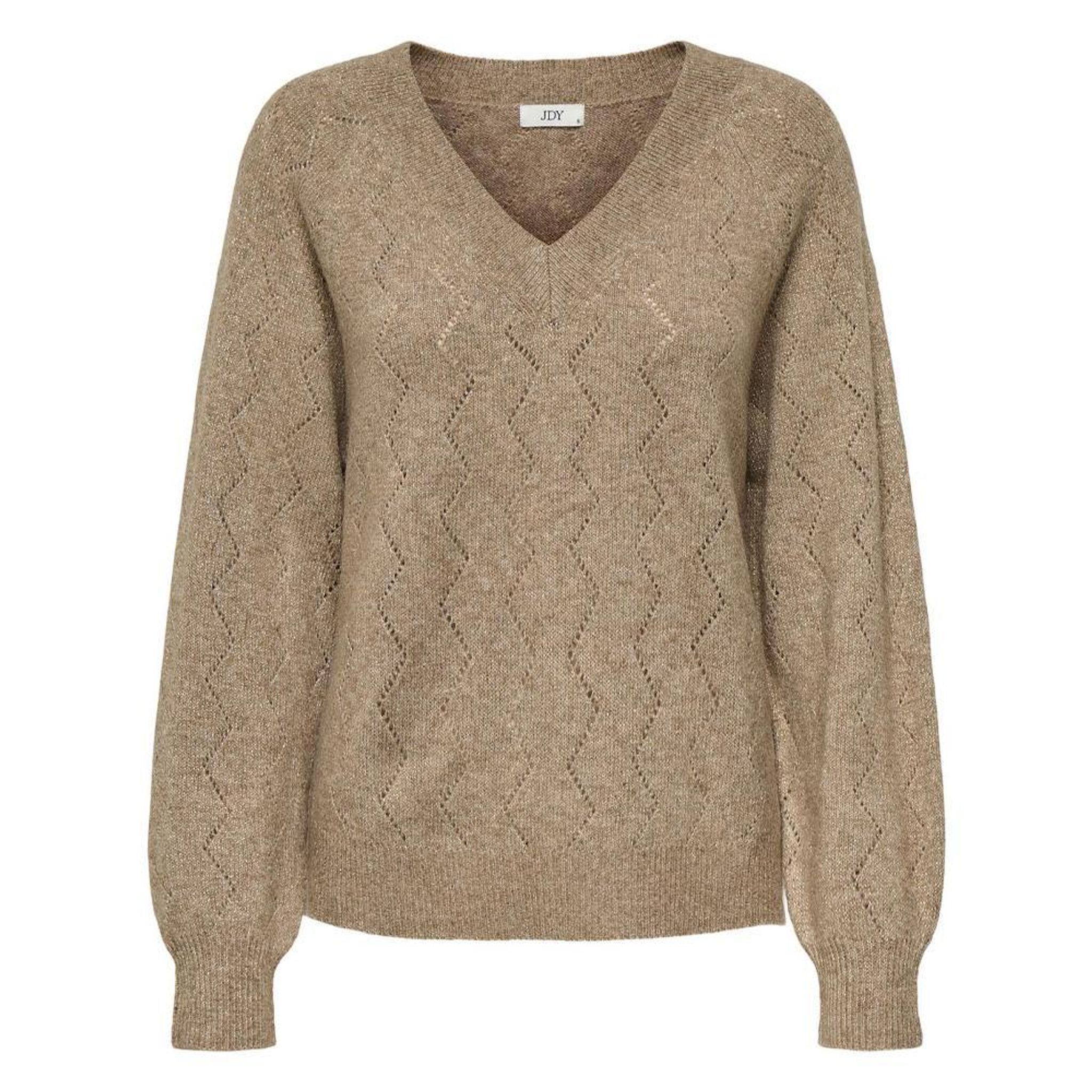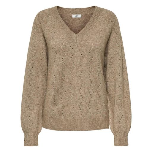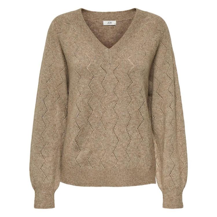 Optez pour ce pull JDY à prix bas !Coloris : BeigeCol V Manches longuesComposition : 65% polyester, 20% acrylique, 10% nylon, 3% fibre metallique, 2% elasthanne