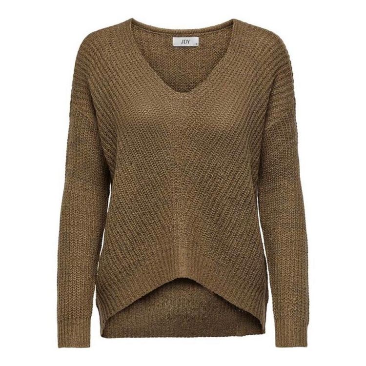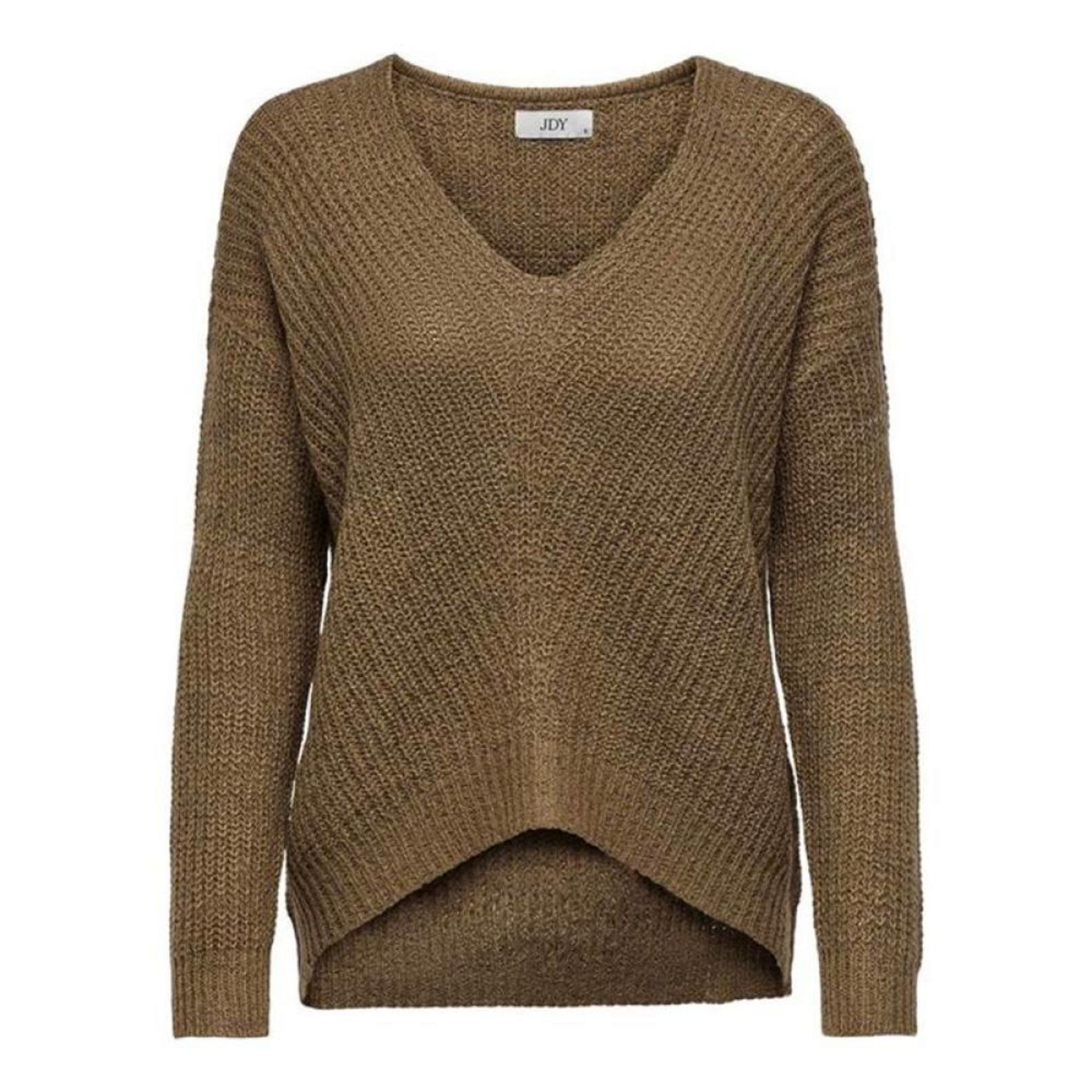 Pull doux pour femme de la marque Jacqueline de Yong Coloris : MarronComposition : 88% acrylique , 12% polyesterLégèrement Oversized , Plus court à l'avant qu'à l'arrière Col V Manches longues