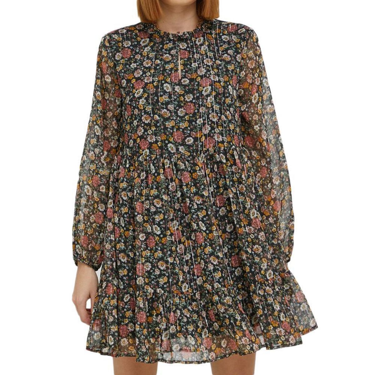 Optez pour la robe femme de la marque JDY !Coloris : NoirCol rond Manches longues Manches Bouffantes Découpe à la tailleFermeture boutonnéeDoublure en 100% polyesterComposition : 95% Polyester, 5% Fibres Métalliques