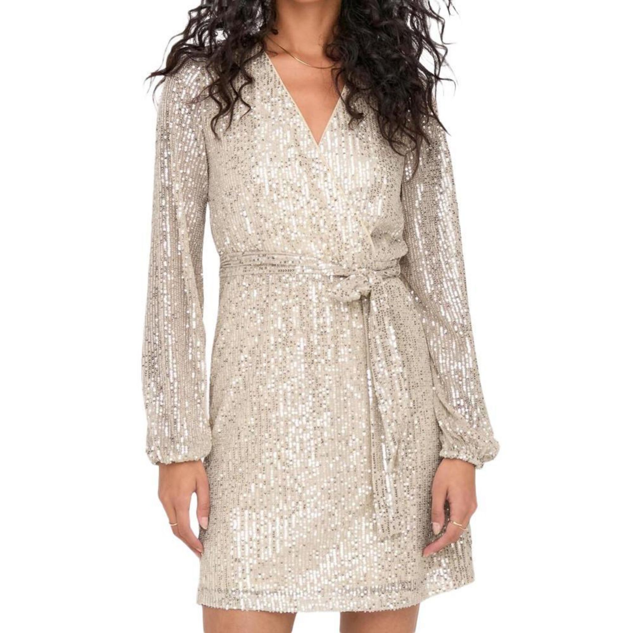 Osez briller avec cette robe de la marque JDY ! Coloris : rose poudré Col V Manches longues Composition : 97% polyester, 3% élasthanne Avec sequins