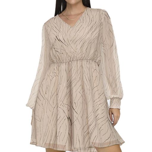 Craquez pour la robe de la marque JDY !Coloris : Beige/DoréCol rondManches longuesTaille élastiqueDoublureComposition :97% Polyester 3% Métallique