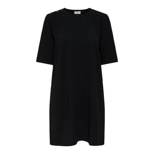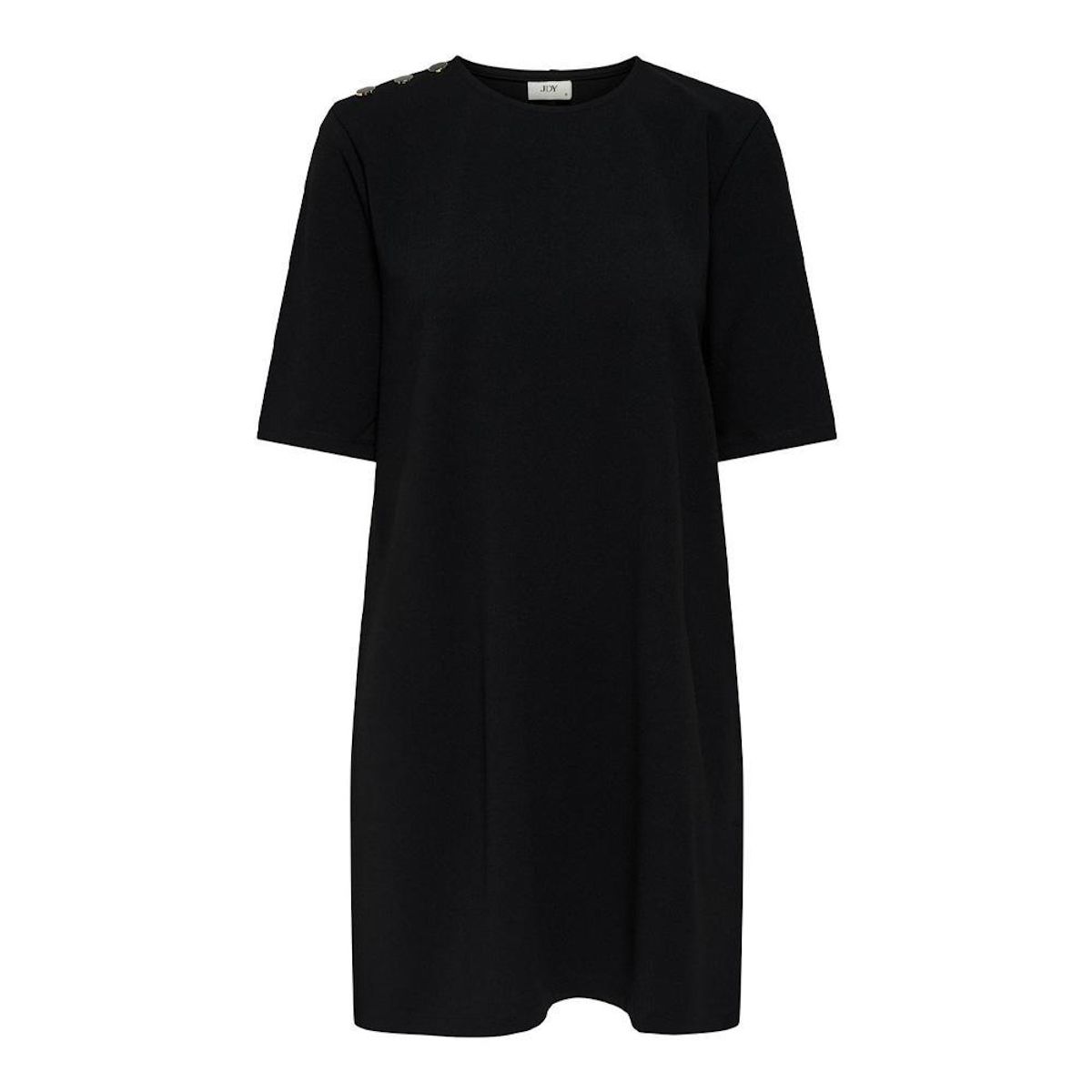 Craquez pour la robe de la marque JDY !Coloris : Noir Col rond Manches courtes Boutons fantaisie Coupe droite Composition : 95 % polyester, 5 % élasthanne
