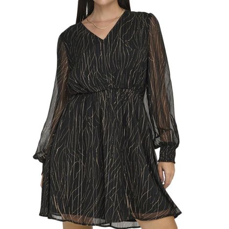 Craquez pour la robe de la marque JDY !Coloris : Noire/DoréCol rondManches longuesTaille élastiqueDoublureComposition :97% Polyester 3% Métallique