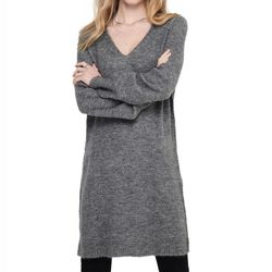Robe pour femme de la marque JDY Manches longues Col V Maille Coloris : Gris Composition : 74% acrylique , 20% nylon , 6% élasthanne