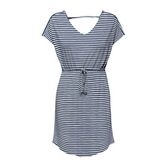 N'attendez plus pour commander cette robe femme de la marque Jacqueline de Yong ! Couleur : Marine Longueur : Légèrement long derrière & un peu plus court devant Col en v Manches courtes Cordon de serrage à la taille Composition : 65% polyester 35% viscose