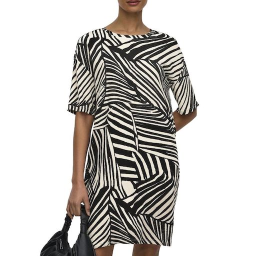 Optez pour cette robe JDY à prix bas !- Coloris : Beige/Noire- Col rond- Manches courtes- Composition : 99 % polyester, 1 % élasthanne- Motifs imprimés
