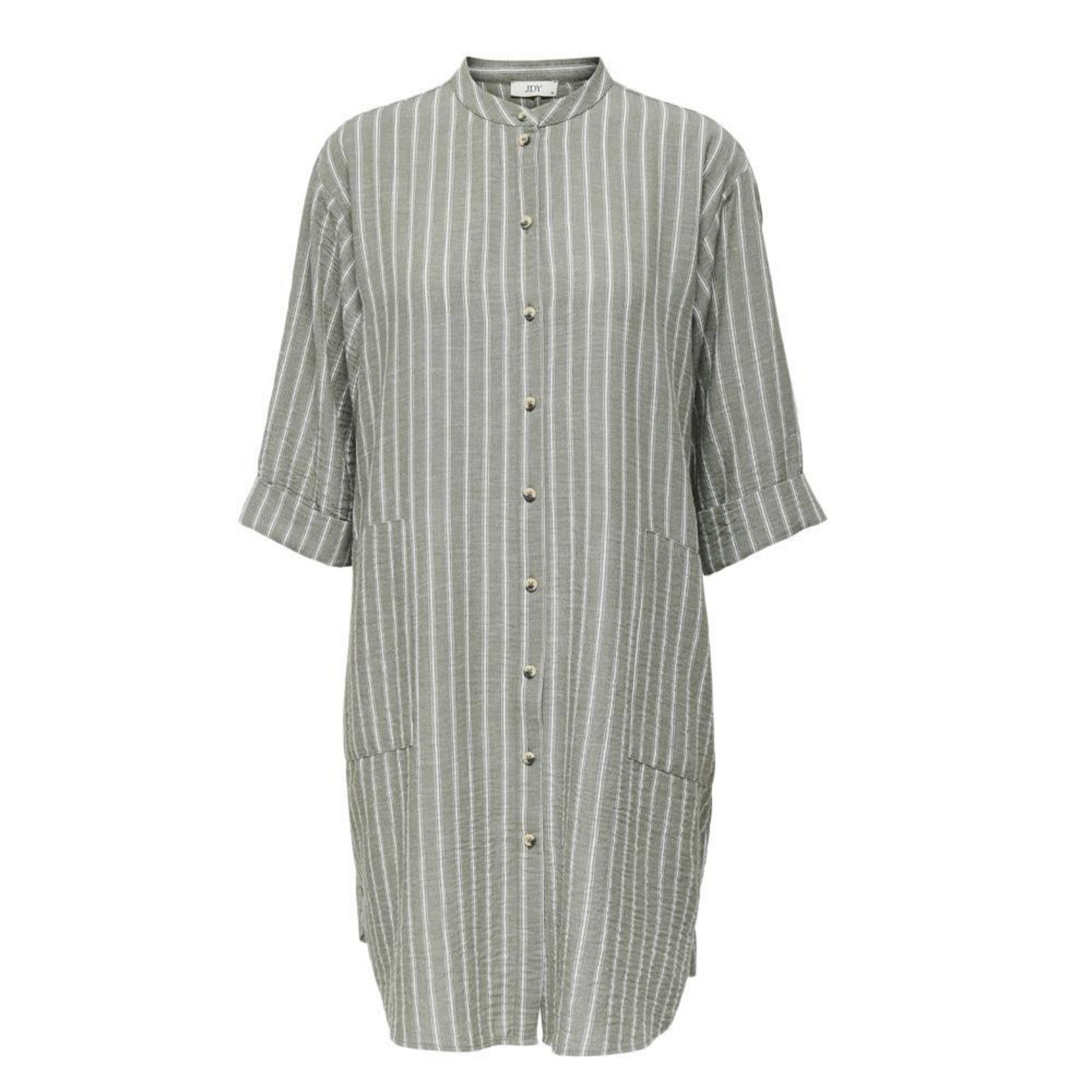 Craquez pour la robe de la marque JDY !Coloris : Vert/BlancCol maoFermeture boutonsManches 3/4RayuresLongueur 7/8Composition : 100% polyester