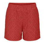 Optez vite pour le short femme JDY !Taille élastique- Coloris : Rouge- 2 poches- Tissu effet broderie anglaise- Composition : 92% polyester , 8% élasthanne