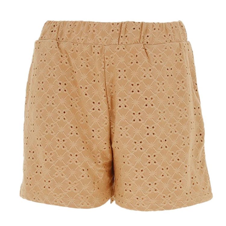 Craquez pour ce short de la marque JDY ! Short casual Taille moyenne Longueur : Au-dessus du genou Ceinture élastiquée Coloris : Marron Composition : 92% Polyester, 8% Élasthanne Effet broderie