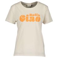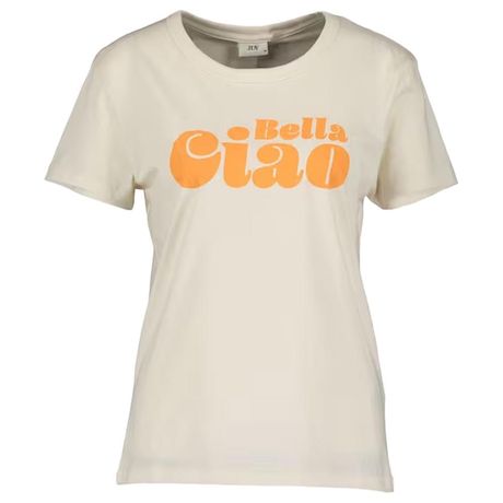Craquez pour ce t-shirt de la marque JDYColoris : Ecru/OrangeCol rondManches courtesComposition : 80% coton, 20% coton recycléVisuel 'Bell Ciao' sur l'avant