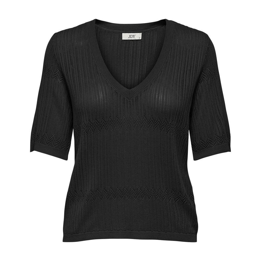 Craquez pour le t-shirt de la marque JDY !Coloris : Noir Manches courtesCol V En maille Composition : 50% Acrylique, 50% Viscose