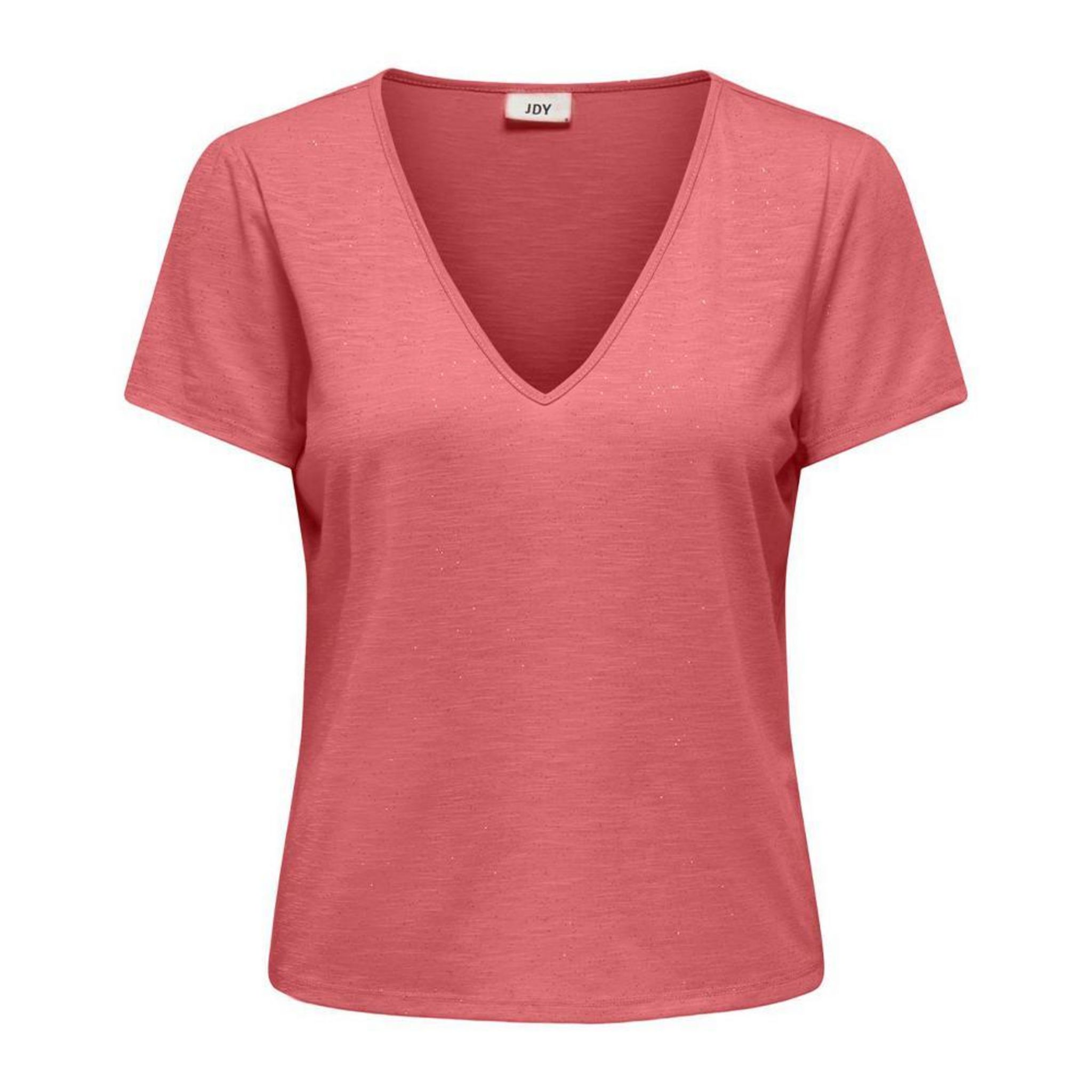 Optez pour ce t-shirt de la marque JDYColoris : RoseCol VManches courtesComposition : 96% polyester, 4% polyester recycléDétail pailleté