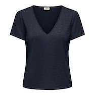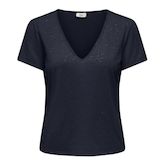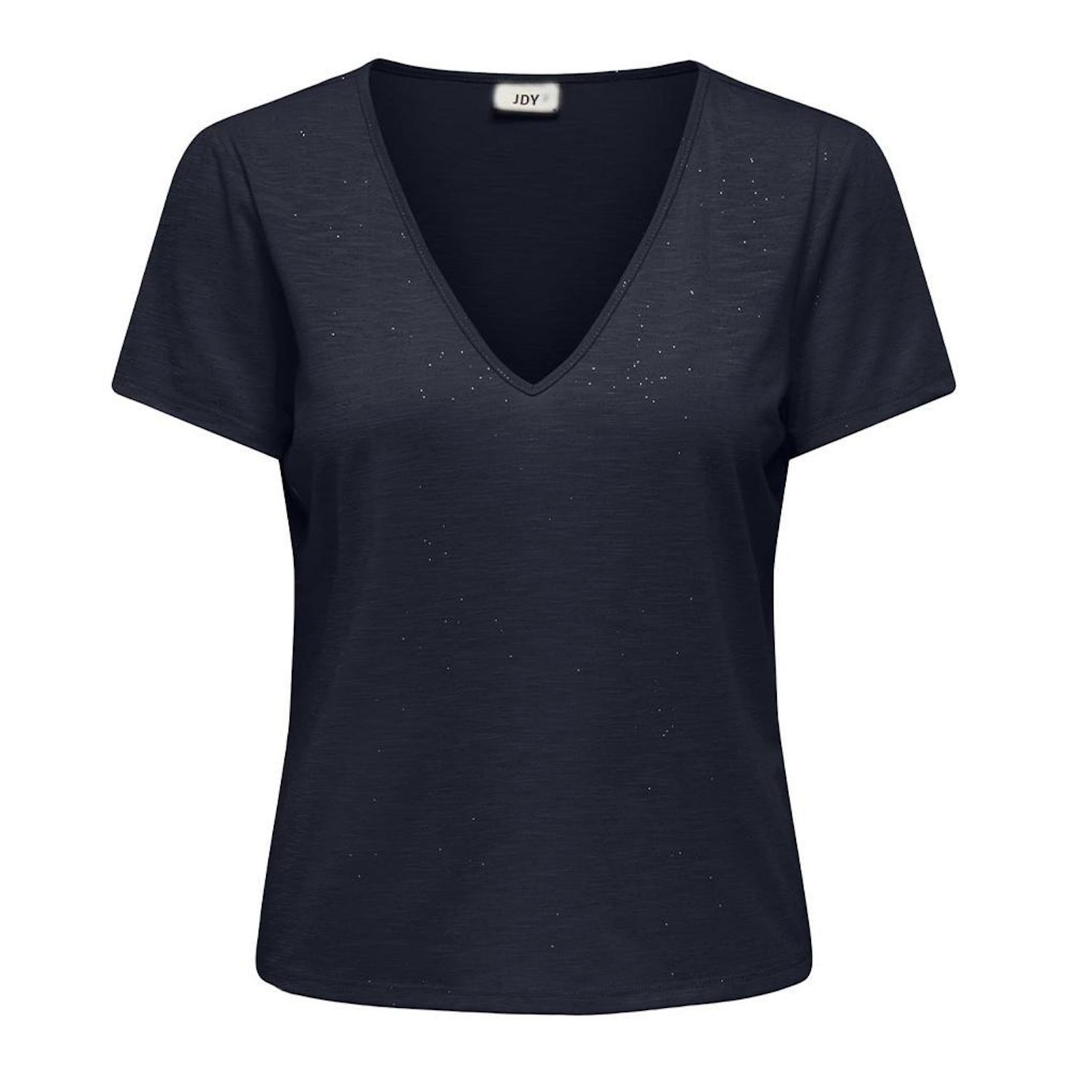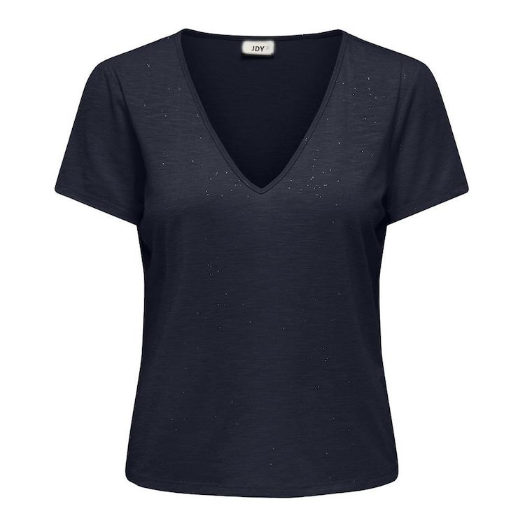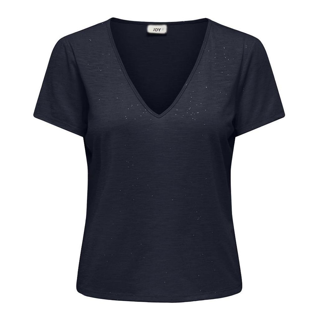 Optez pour ce t-shirt de la marque JDYColoris : Marine Col VManches courtesComposition : 96% polyester, 4% polyester recycléDétail pailleté
