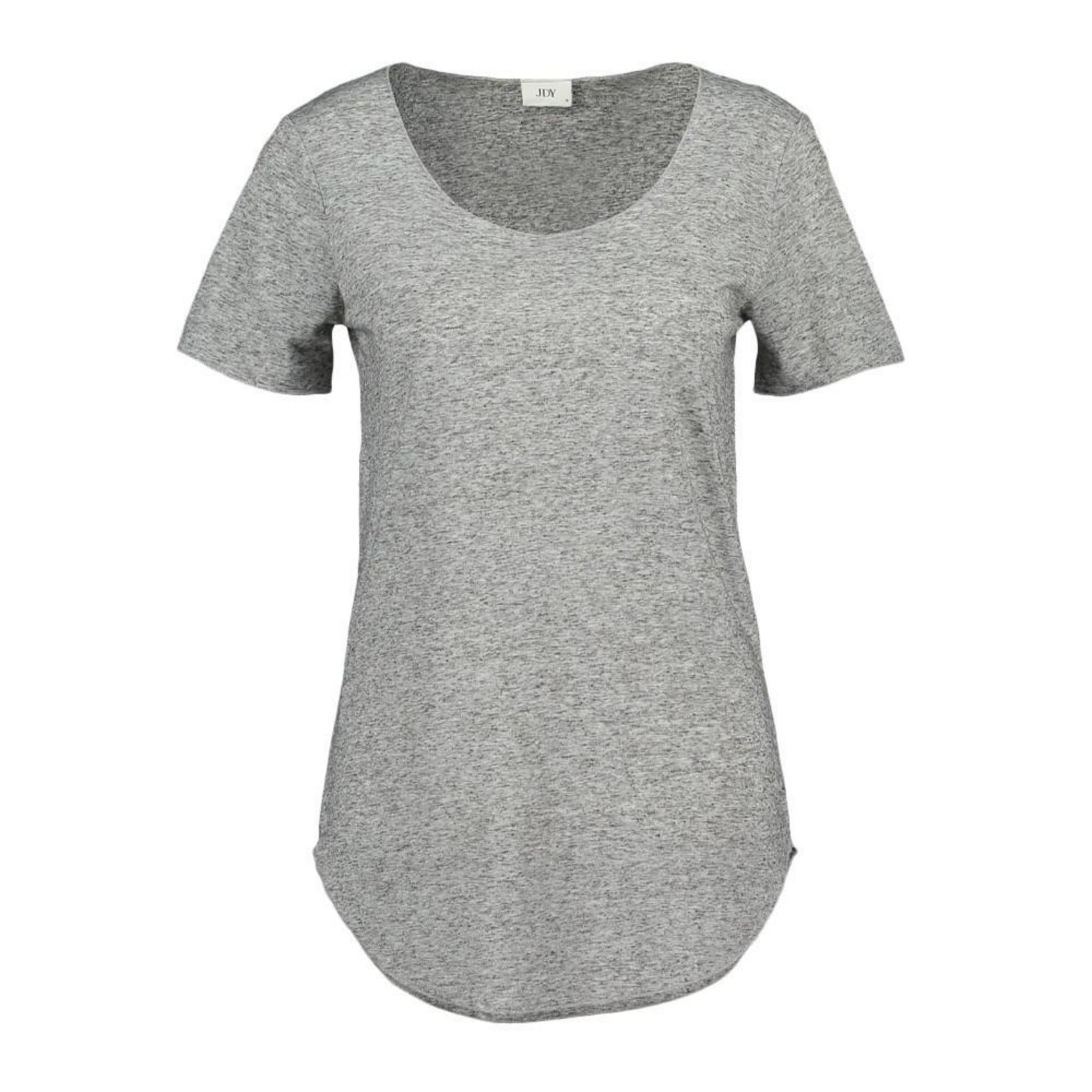 Craquez pour le t-shirt de la marque JDY ! Coloris : Gris Col rond Manches courtes Tissu chiné Composition : 85% Polyester, 15% Lin