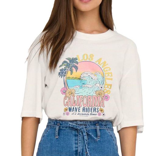 T-shirt femme JDY !- Manches courtes- Col rond- Coloris : Blanc- Imprimé sur l'avant- Composition : 100% coton