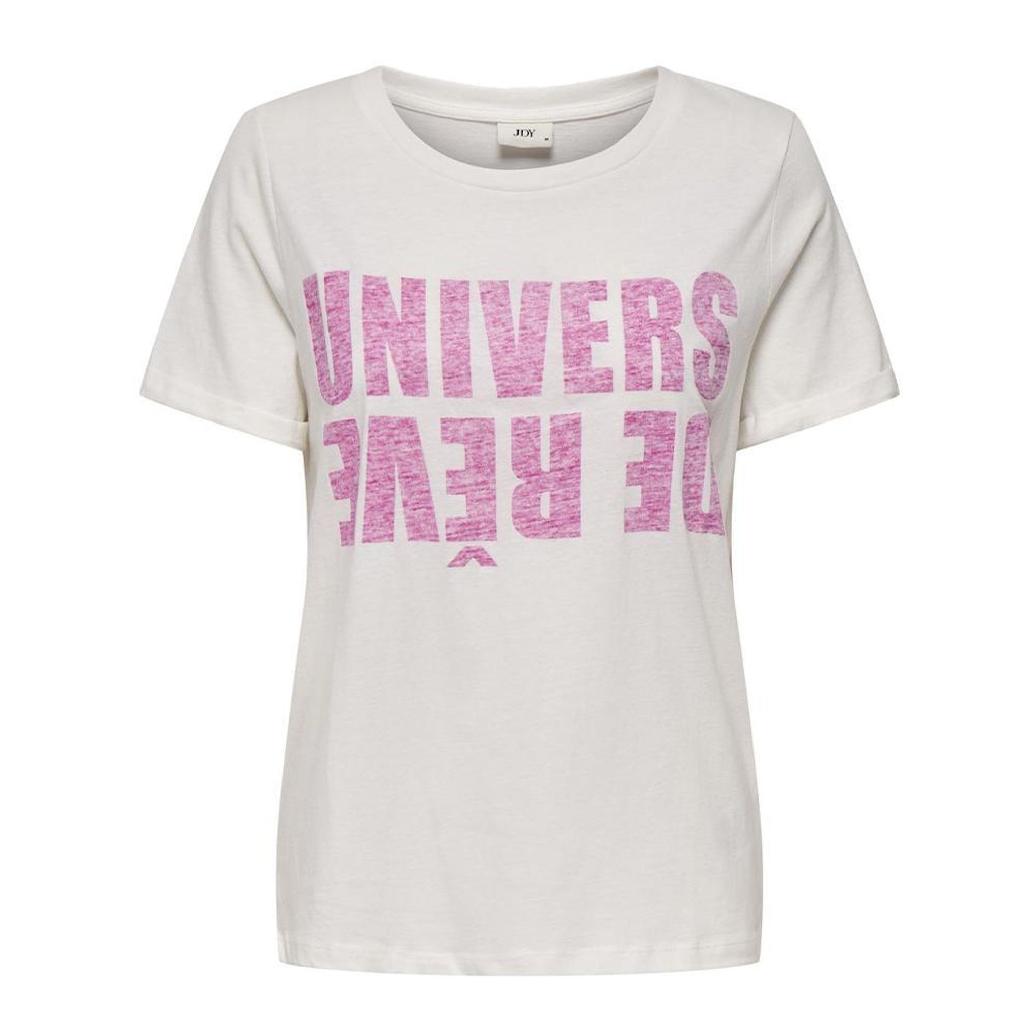 Craquez pour le t-shirt de la marque JDY !Coloris : Blanc/Rose Col rond Manches courtes Composition : 100% Coton