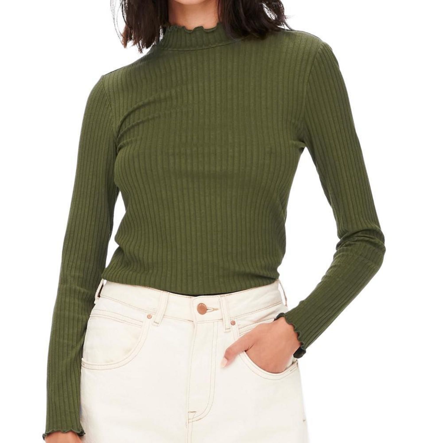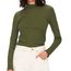 Optez pour le t-shirt femme de la marque Jacqueline de Yong Manches longues Col montant Tissu côtelé Coloris : Vert foncé Composition : 80% viscose , 20% coton