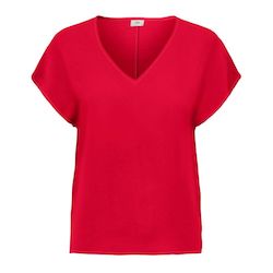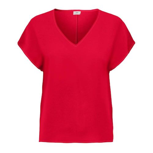 Craquez pour le top femme JDY !Manches courtesCol VColoris : RougeTissu fluideComposition : 100% viscose
