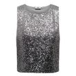 Découvrez le top à sequins de la marque JDY !Coloris : argent Col rondSans manchesDétails : SequinsCoupe : Regular FitCoupe courte Composition : 97% Polyester, 3% Élasthanne