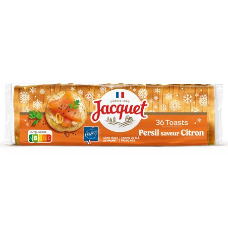 Toasts ronds au persil et au citron Jacquet, idéals pour vos entrées festives accompagnés de saumon ou à agrémenter selon vos envies en version salée ou sucrée.