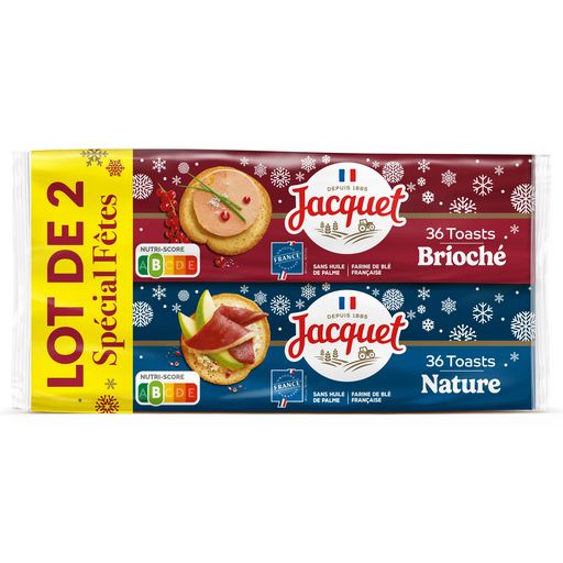 Lot de 2 Toasts Ronds nature et brioché Jacquet, idéals pour vos entrées festives accompagnés de foie gras ou à agrémenter selon vos envies en version salée ou sucrée.