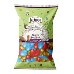 Le coussin œufs praliné aux 3 chocolats, lait, blanc et noir dans un format généreux à partager.