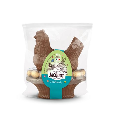 La poule couveuse et ses petits œufs praliné : l'incontournable de Pâques, en version généreuse avec son format 400g.