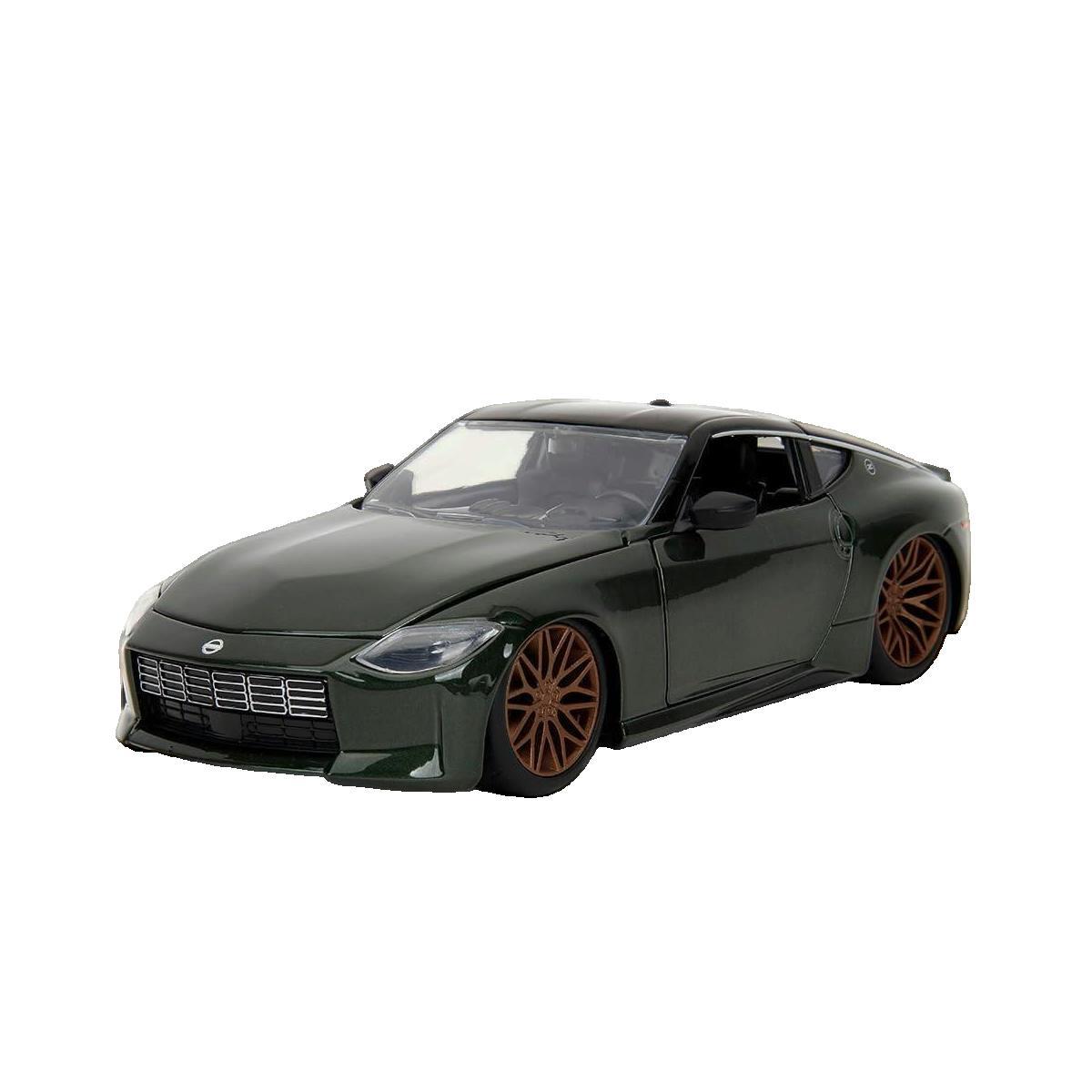 Découvrez le modèle réduit Nissan Z 2023 de la marque Jada Toys, à l'échelle 1/24. Inspiré de la célèbre franchise 'Fast & Furious', ce modèle en métal Die Cast de haute qualité et plastique injecté offre des détails réalistes avec portes, capot et coffre ouvrants. Parfait pour les collectionneurs e