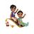 Prêt à partir sur le tapis volant au pays du Rêve Bleu, Aladdin et Jasmine sont accompagnées d’Abu et de la lampe magique.