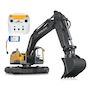 Bagger Volvo EC160E Metal 1:16 2,4GHz Destruction-Set. Descriptif:. · 2,4GHz pour le multijoueur. · Licence officielle. · Intérieur détaillé. · Design détaillé. · Son réaliste du moteur. · Bouton de démarrage sur la télécommande. · Mode veille automatique. · Chaque articulation est contrôlable individuellement. · Phares à LED. · Seau en métal. · Fonction d'attachement. · Plage de travail -150mm à +500mm. · Force de levage 1500g. · Boîte de vitesses en métal. · Batterie remplaçable. Fonctions:. · Avant/arrière. · Gauche/Droite. · Marche/Arrêt Démarreur. · Son réaliste du moteur, désactivable. · Klaxon. · Ouverture/fermeture du grappin. · Rotation sans fin de la tour. · Marteau de démolition avec fonction d'impact. · Godet haut/bas. Étendue de la livraison:. · Modèle. · Télécommande 2,4GHz. · Batterie d'entraînement. · Chargeur USB. · Tournevis. · Grappin à coquille. · Marteau de démolition métal. · Boule. · Instructions. Détails du produit:. · Temps de parcours env. (min.): 20. · Couleur: gris / jaune. · Vitesse de pointe env. (km/h): 1. · Temps de charge USB env. (heures) : 1,5. · Temps de charge USB env. (min) : 90. · indicateur: 1:16. . Notes:. · Accessoires nécessaires: 3 x AA-Piles // LR6 (Alkaline) // HR6 (NiMH). · Groupe d'âge: à partir de 14 ans