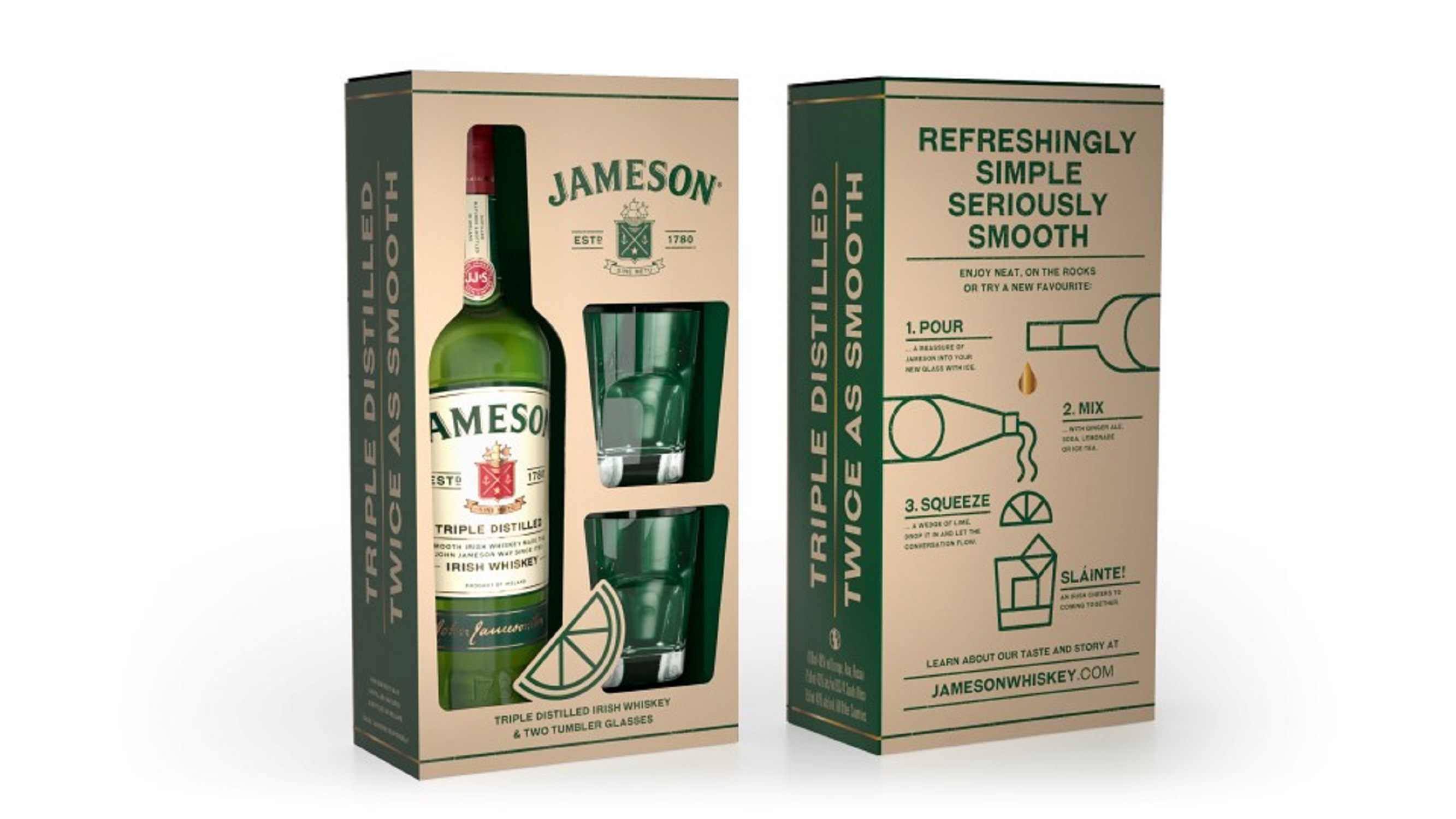 Jameson est élaboré à partir d’orge maltée et non maltée, séchée dans des fours fermés, qui en préservent la saveur naturelle. Il se caractérise par sa troisième distillation, contre deux pour les Scotchs et une pour les Bourbons, ce qui lui donne son goût rond, doux et moelleux. Enfin, Jameson vieillit en fûts de chêne 5 à 7 ans, où l'alchimie entre le bois et le breuvage lui donne sa couleur or ambré et ses arômes délicats.