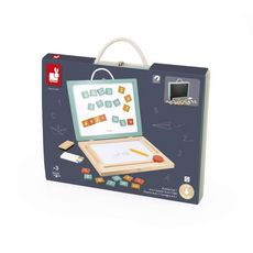 Le kit inclut 42 magnets (lettres, chiffres et signes) pour initier à l'écriture et aux mathématiques. La variété des supports stimule différents modes d'apprentissage : tactile avec les magnets, visuel avec les couleurs, et pratique grâce aux outils fournis (craie, stylet).
