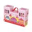 Emportez partout avec vous la valise de jeu JANOD le château enchanté. Cette valise en carton se déplie pour donner forme à un château enchanté contenant de nombreux accessoires de décoration et figurines. Le plus ? le château est entouré d'un jardin et d'une douve, formés par un puzzle réversible