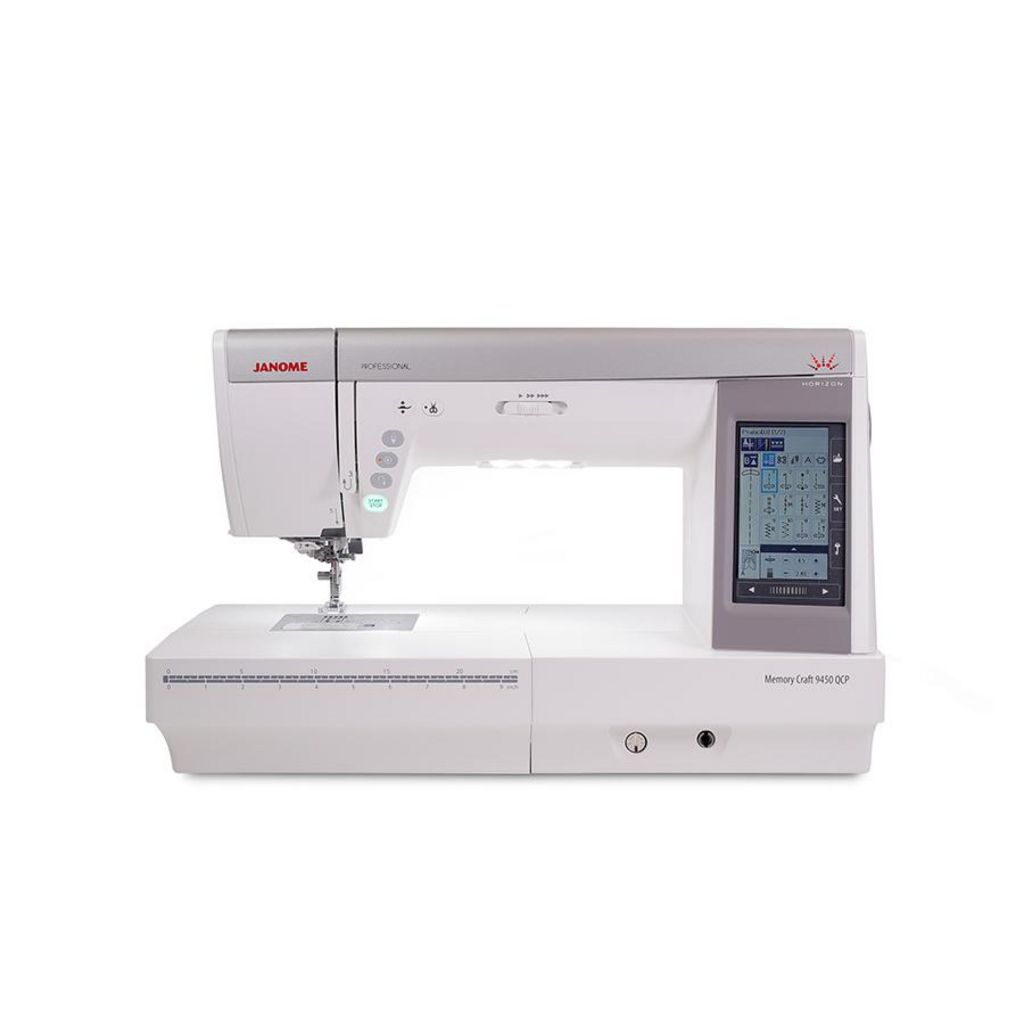 La nouvelle Janome Horizon Memory Craft 9450 QCP Professional affiche un design ergonomique adapté à la haute couture, au quilting et à la décoration. Elle réunit le meilleur de technologie JANOME : levée automatique du pied de biche, système AcuFeed Flex, bras libre extra long de 280 mm à droite de l'aiguille, grande vitesse de couture 1060 points minute, genouillère ajustable, coupe fil à la pédale...
