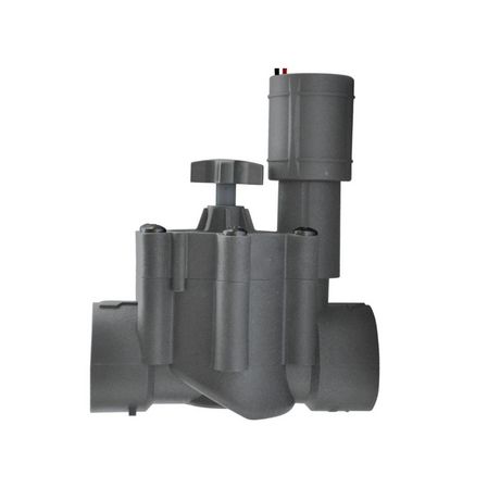 La vanne électrovanne F/F 1 9V avec solénoïde à impulsion 9V pour une station d'arrosage utilisable sur installation résidentielle pour l'arrosage automatique du jardin ou de la pelouse. La vanne est équipée d'une flèche pour le sens du passage de l'eau.