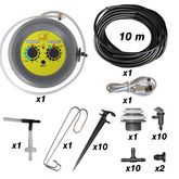 Description détaillée du produit: - produit: Kit autonome d'arrosage - marque: Jardibric - contient: 10 m de tuyau de diamètre 6 mm, 1 pompe programmable, 1 crépine lestée, 1 adaptateur de bouteille, 1 câble USB de charge, 1 accroche récipient, 10 tés de diamètre 6 mm, 2 bouchons de diamètre 6 mm