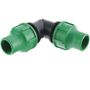 Raccord coudé tuyau 16mm. Type de fixation à compression. Usage arrosage goutte à goutte. Matière Polypropylène.