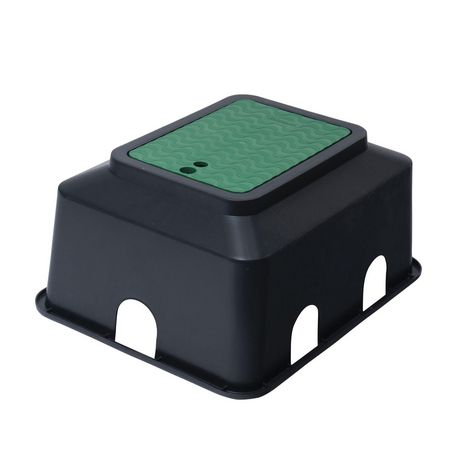 Informations produit:Regard rectangulaire pour 1 à 4 électrovannesMarque: JardibricMatière: PolypropylèneCouvercle verrouillable par cléDimensions: 520 x 420 x 260 mmColoris du regard: NoirColoris du couvercle: Vert