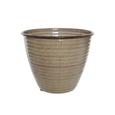 Cache-pot rond en acier émaillé taupe Amy - Ø 37 x 30 cm - Jardideco