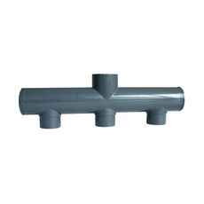 Pièce plomberie pour piscine. Collecteur d'aspiration 3 entrées/1 sortie PVC Ø 63/50 mm - AquaZendo. Fabriqués en PVC PN16 BARS (résistant à une pression maximale de 16 bars). Livré avec 2 bouchons d'extrémité. Caractéristiques techniquesCouleur : GrisMarque : FITTMatière(s) : PVCRaccords : 63 mmTyp