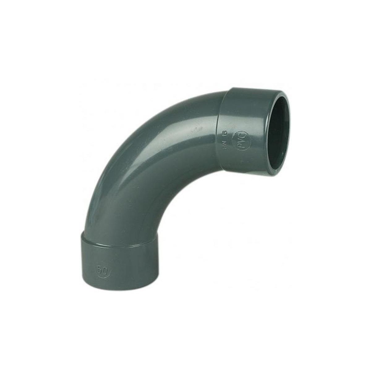 Pièce plomberie pour piscine. Courbe PVC 90° injectée grand rayon Ø 63 mm - AquaZendo. Fabriquée en PVC PN16 BARS. Convient à une pression maximale de 16 bars.