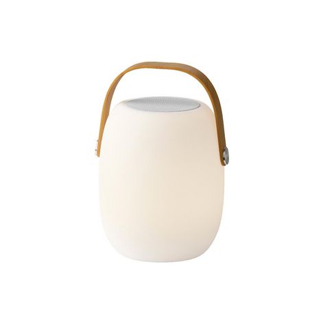 Enceinte d'extérieur lumineuse LED portative. Compacte et légère, à emporter partout avec vous, pour écouter vos musiques préférées.La lampe enceinte d'extérieur lumineuse LED portative avec connectivité Bluetooth de Jardideco est le compagnon parfait pour vos soirées d'été dans le jardin ou sur la