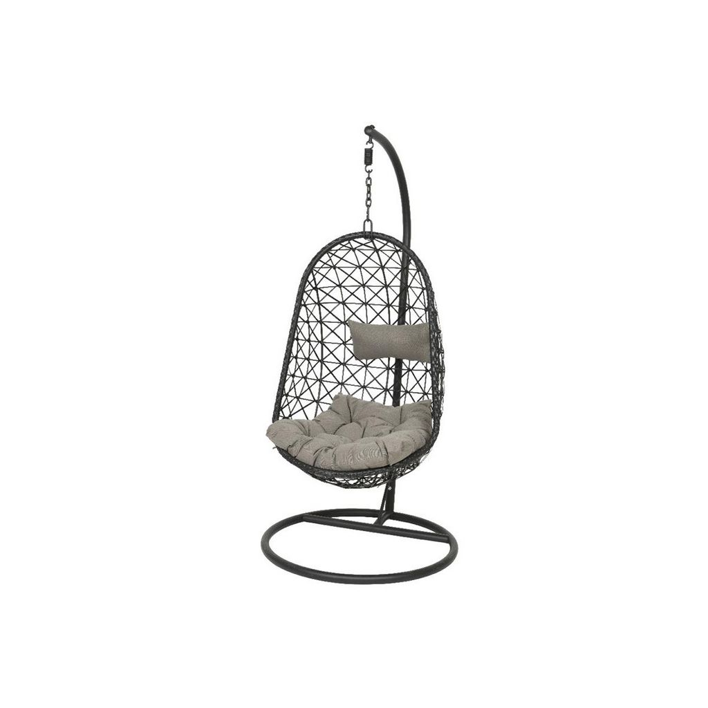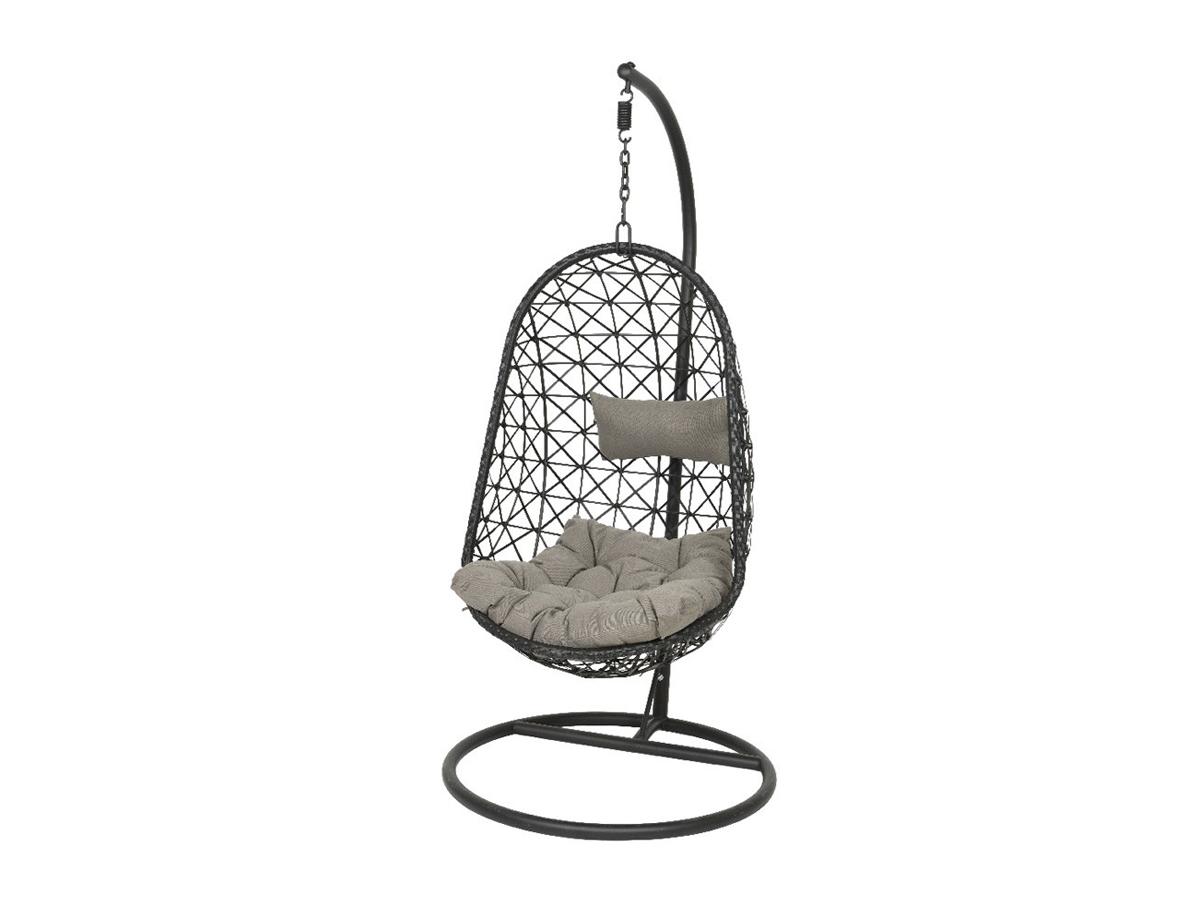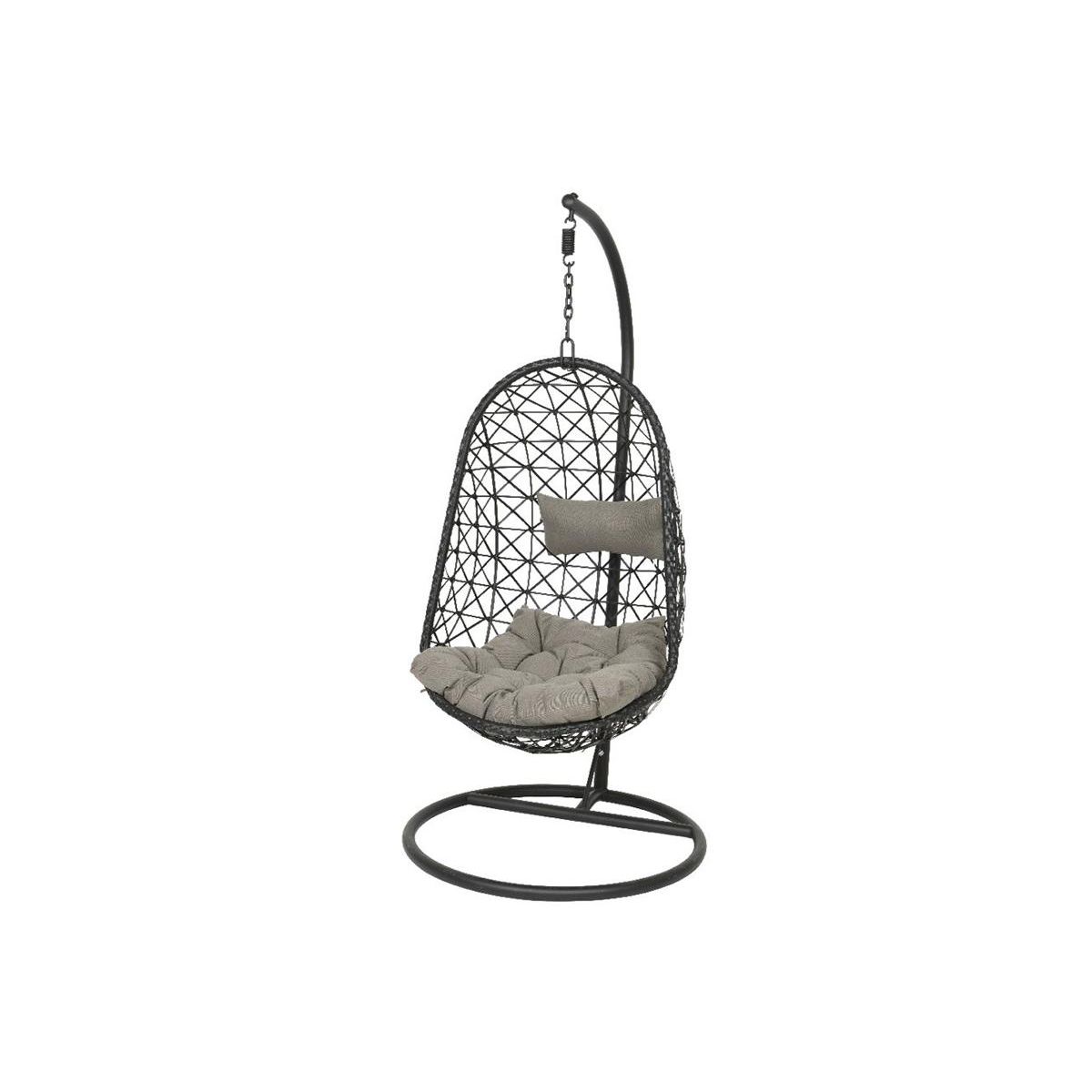 Fauteuil suspendu en résine tressée Bologne avec structure de couleur noir et muni de 2 coussins 100% en toile.