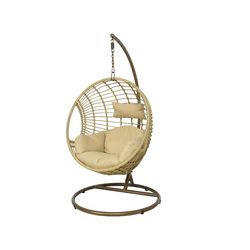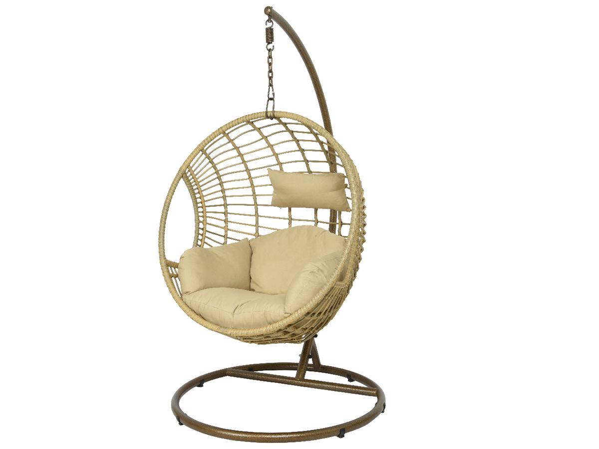 Chaise suspendue en résine tressée confortable et agréable.Munie de deux coussins, cette chaise deviendra vite l'élément central de votre espace de repos et de détente.Elle peut supporter un poids max de 150 kg grâce à sa structure solide traitée antirouille.À installer à l'intérieur comme à l'extér