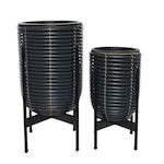 Lot de 2 cache-pots en polyrotin anthracite rond sur pieds - Jardideco